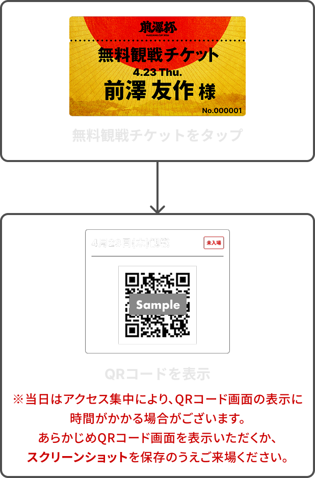 来場日程の無料観戦チケットをタップして